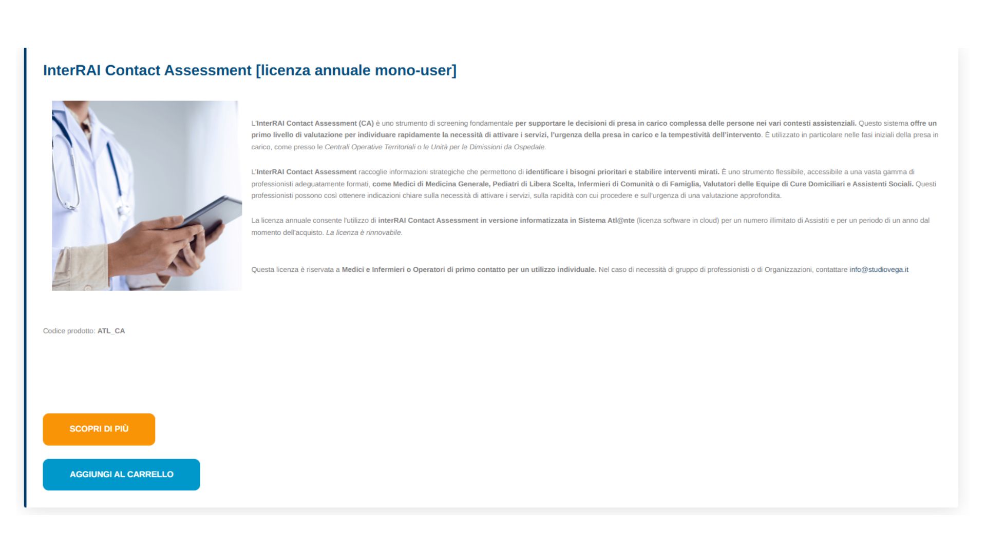 Queste licenze permettono di utilizzare in versione informatizzata, tramite Sistema Atl@nte, strumenti di riferimento come NECPAL e i sistemi di screening e valutazione della Suite interRAI.